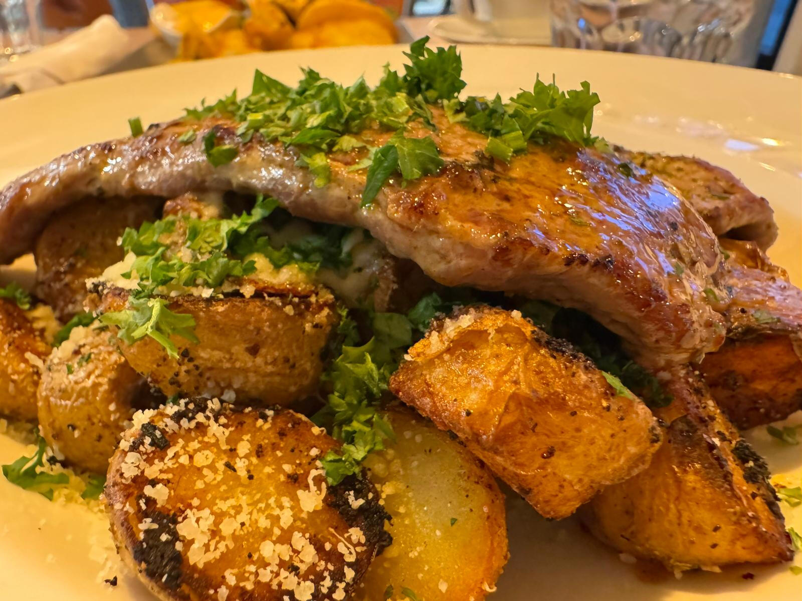 Pan-fried gnocchi with pistachio-basil butter, roasted pistachios, semi-dried tomatoes, parmesan.